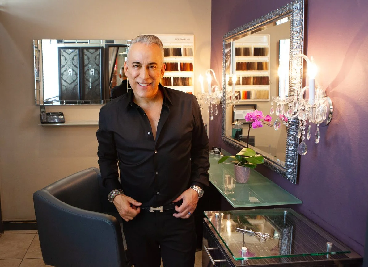 I came to Hollywood to be in actor in the early 1990’s, leaving behind a very successful salon career in Seattle. Six years of acting classes turned out to be the perfect place to meet new clients, such as Sharon Lawrence, Leslie Bibb, Teri Polo, Rosa Blasi, Jessica Steen, and June Lockhart to name a few. I left the acting world in 2000 and enrolled in UCLA’s prestigious Interior Design Program. In 2001 I put my new found skill set to work and opened my own boutique hair salon on Larchmont Boulevard, which let me combine my love of Interior Design, with my ever growing roster of cut and color clients. My next design chapter took me to Palm Springs where I bought and renovated several homes as a weekend hobby, filling them with my original oil paintings and intriguing wall murals. I documented the mural makeovers, which garnered me over two million views on YouTube. When I met my future husband Recio Young in 2014, who worked in Reality TV, we combined our skill sets to create our own TV Pilot ‘Artful Living’. The show’s concept explored 120 years of design and how it’s relevant to the world today, by exploring the major design movements of the 20th Century. We were married in Venice, Italy at the Hotel Monaco & Grand Canal in 2019. We filmed the entire event for both a documentary and a sizzle reel. I designed the entire wedding in 9 months with bespoke tablecloths, art pillows and chinoiserie tuxedos. My continued Love of Design and Art has culminated in a new found position in politics, by serving as the Business Representative for the Greater Wilshire Neighborhood Council, as well as being a board member for the Larchmont Boulevard Association (LBA). I recently created a Legacy Bench Program for the LBA and partnered with the Larchmont Village BID which is purchasing matching trash cans, both in a chic French Blue which we hope will become Larchmont’s signature color. My salon turned 24 this January, and I’m so grateful for the community that I’ve found in Los Angeles.